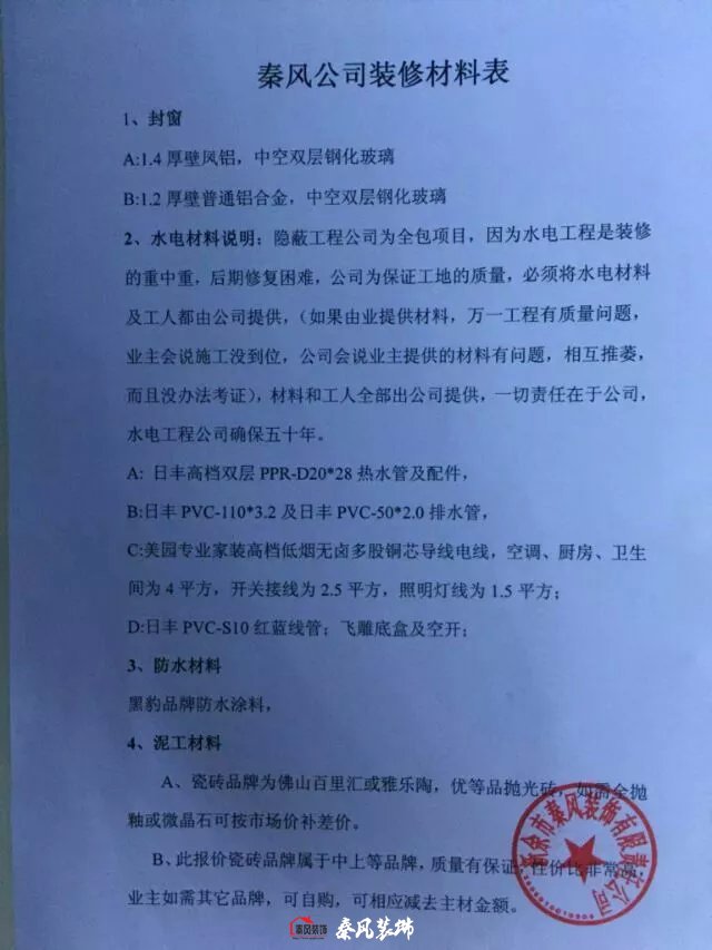秦風公司裝修材料配置,最近太多人問了,于是決定發出來,材料明朗,不搞虛假,只要我們用的材料不符,業主可以不付款,我公司可是“先裝修后付款,售后終身,隱蔽工程質保50年”,我們沒有樣板房,每套房子都是樣板房,隨時參觀,隨時檢查。
