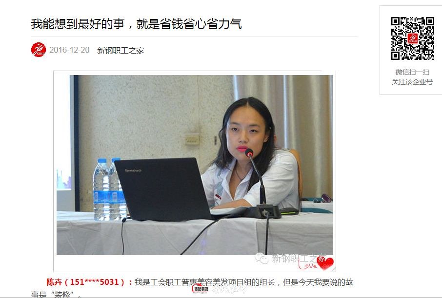 日前,新鋼職工之家 舉辦“我與會員服務(wù)卡的故事”征文活動。該工會職工普惠項目中的“美容美發(fā)項目組”組長陳女士參與了活動,如實講述了她真實的裝修過程。