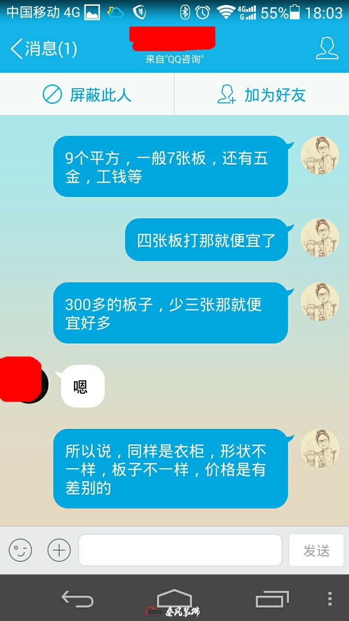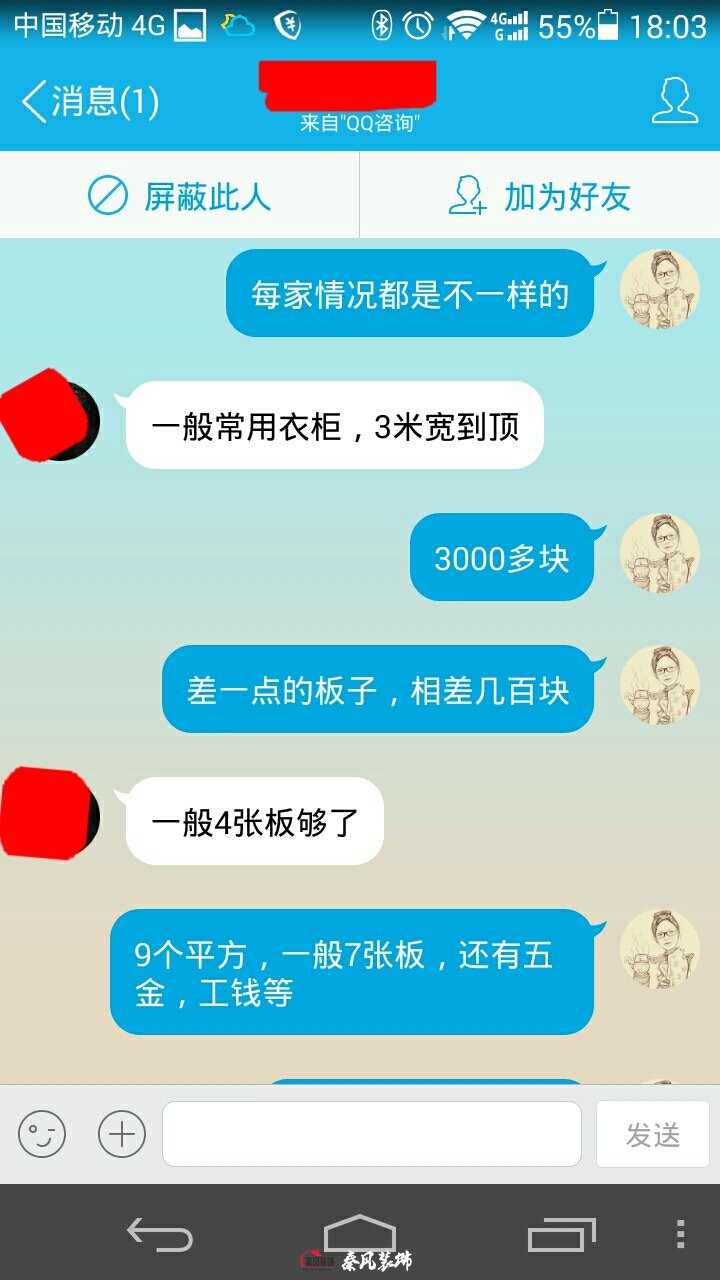 我說:我們是用七張板做的,(3000多是用千年舟或莫干山E1級的板子[差板子相差幾百塊錢],用七張板做,衣柜內在結構相對合理復雜。四張板也可以做,就是有其外形,而內在結構簡單,再加上工錢和衣柜五金、柜門,差不多就是3000來塊錢)。